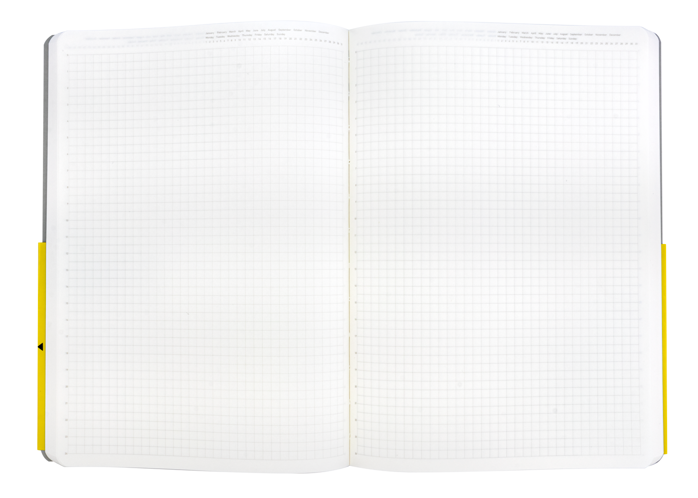 This sleek, minimalist planner was designed for "editors"—people who use their planners not only for listing appointments but also for jotting down notes, lists, sketches, and designs. A subtle gray grid pattern helps keep lists and drawings neatly aligned. The dates and hours printed in the top and left-hand margins are also subtle, letting you easily use it as a journal or idea book instead of a planner. The planner holds a full year's worth of pages, but thanks to its thin paper it is slim enough to easily slip into a bag or backpack.