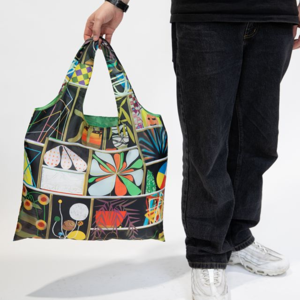 Turn errands into exhibitions! Our durable reusable Art Sacks™ showcase on-trend work from contemporary artists and fold into a sewn-in pocket that doubles as a spot for your phone or keys. Reinforced double-layer handles make them strong enough for serious schlepping, and they sell best in a wide array so every customer finds a favorite. This design by artist Paul Wackers is perfect for anyone who loves surreal, colorful, airbrush-meets-collage style art. Art Sacks® are made with 100% recycled rPET made from plastic bottles, STANDARD 100 by OEKO-TEX® certified, use waterless printing, and are machine washable.