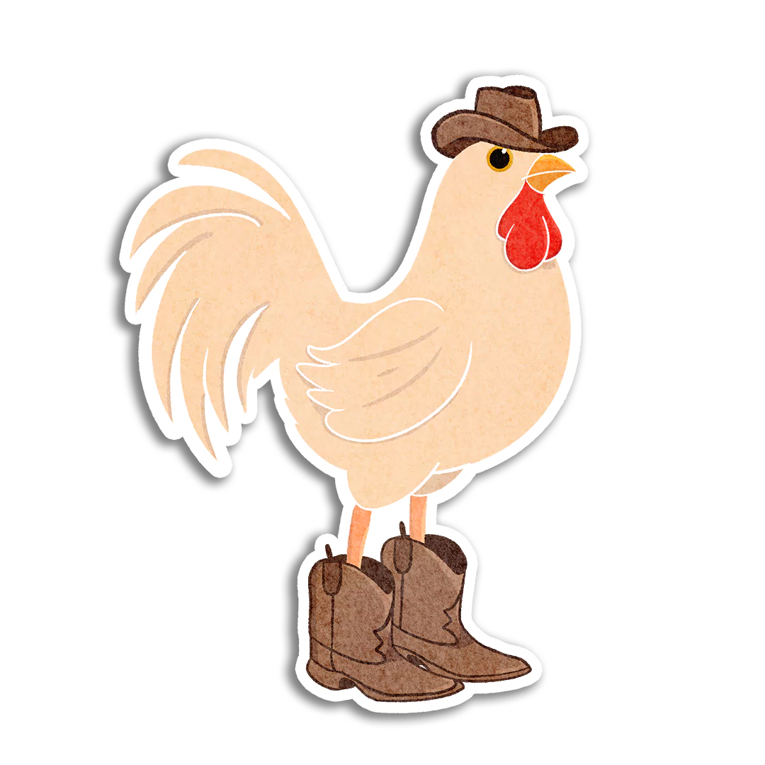 Round up your favorite items with our Cowboy Chicken sticker! Sporting a classic cowboy hat and boots, this chicken isn’t just crossing the road—it’s taking on the frontier. Great for adding a playful western flair to your water bottle, laptop, or e-reader, this sticker is perfect for fans of farmyard fun and cowboy adventures.