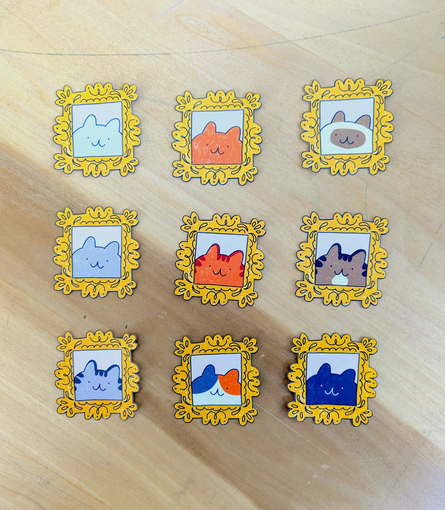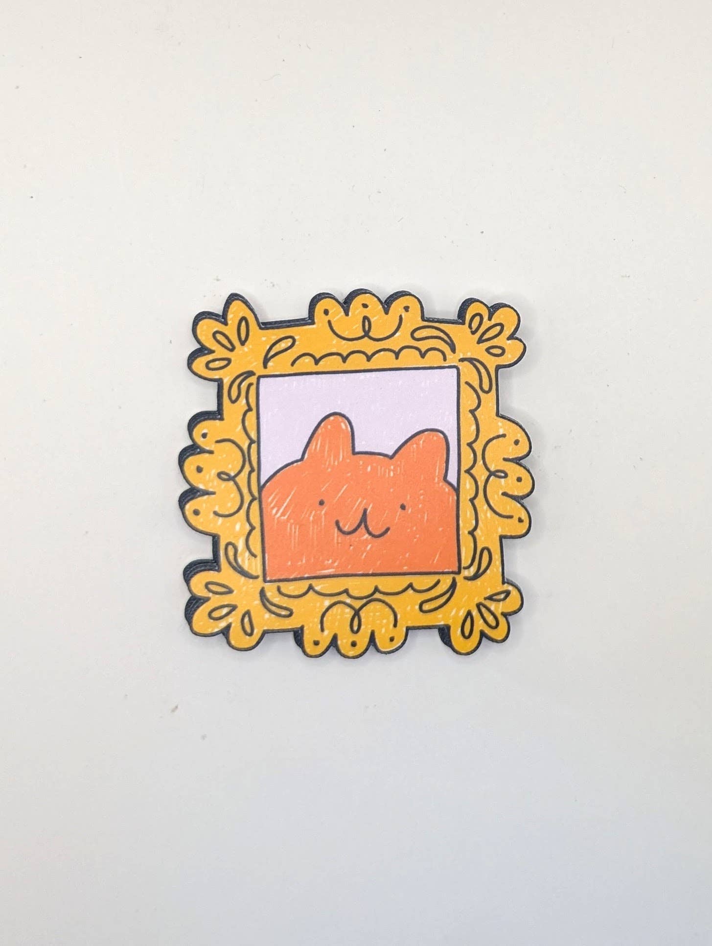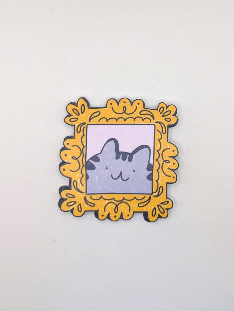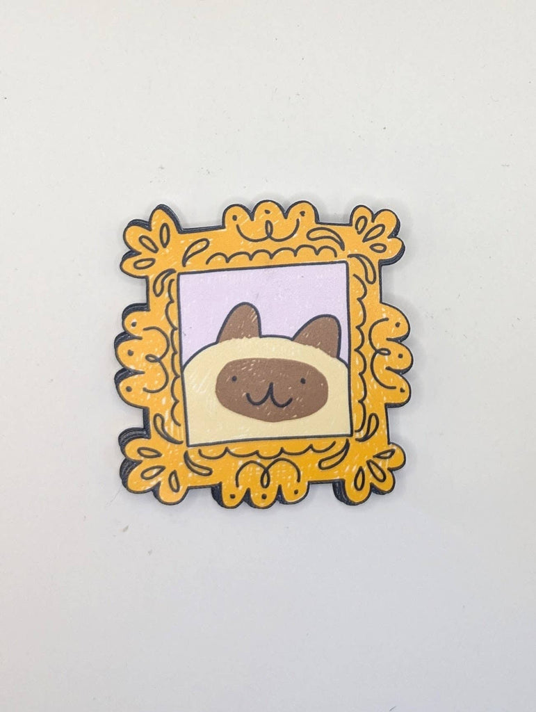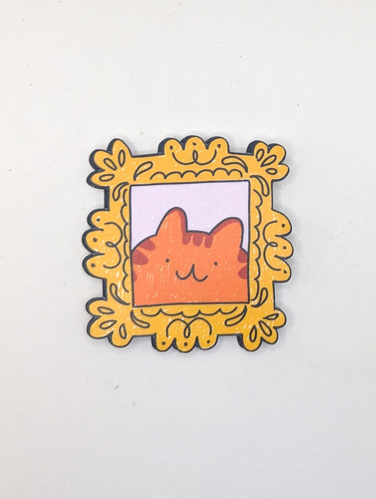 Add a dash of whimsy to your laptop, water bottle, or journal with these Framed Cat Portrait Vinyl Stickers! Each sticker features a scribbly, ornate gold frame showcasing a cute cat painting, perfect for cat lovers and art lovers alike. These waterproof vinyl stickers are durable and ready for daily use, with 9 color variations to match your mood or your cat’s fur: white, grey, grey tabby, orange, orange tabby, calico, Siamese, brown tabby, and black. Whether you want to decorate your sketchbook, gift to a cat-obsessed friend, or create a mini cat gallery on your water bottle, these stickers bring cozy, playful energy wherever they go. Designed, printed, and cut in-house, each sticker measures approximately 2.3"x2.3" and is made with high-quality waterproof vinyl that resists scratches and fading. Keywords: cat stickers, framed cat art, vinyl waterproof stickers, cute cat sticker, kawaii cat stickers, laptop stickers, water bottle stickers, illustrated cat stickers, cat lovers