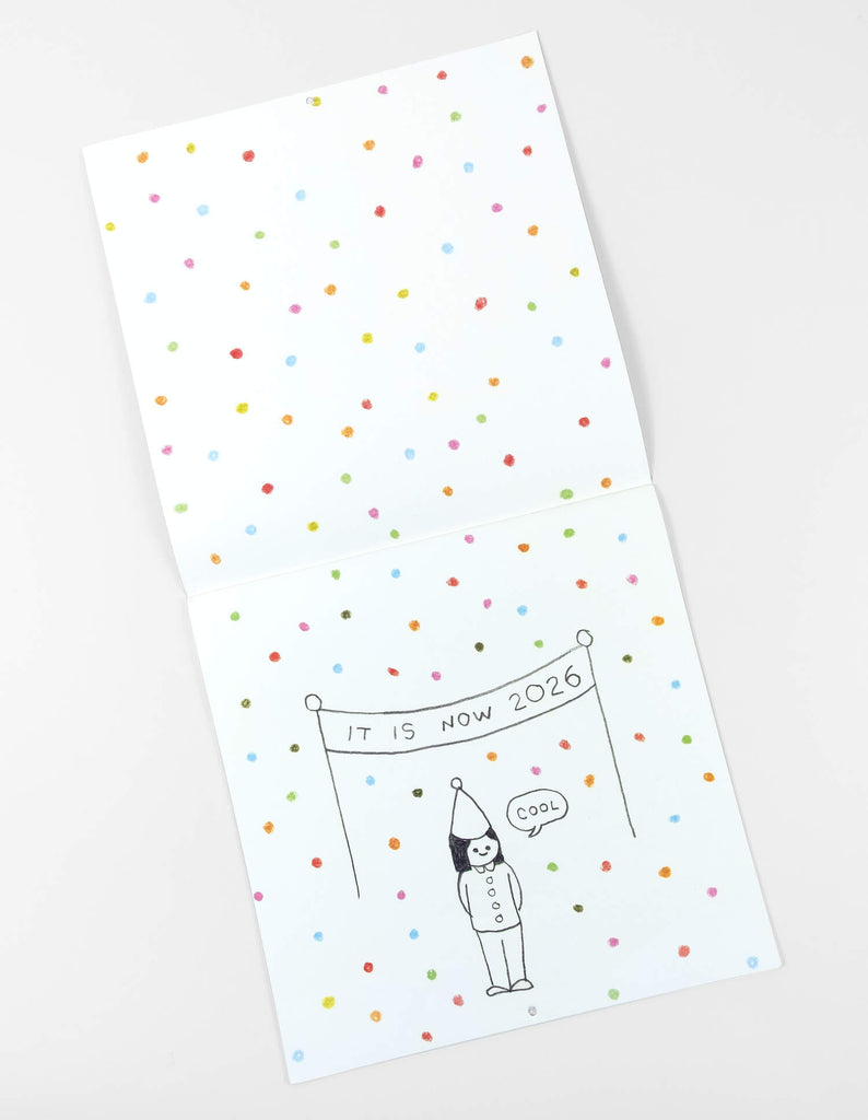 12 months, saddle-stitch bound and hole punched for easy wall hanging.