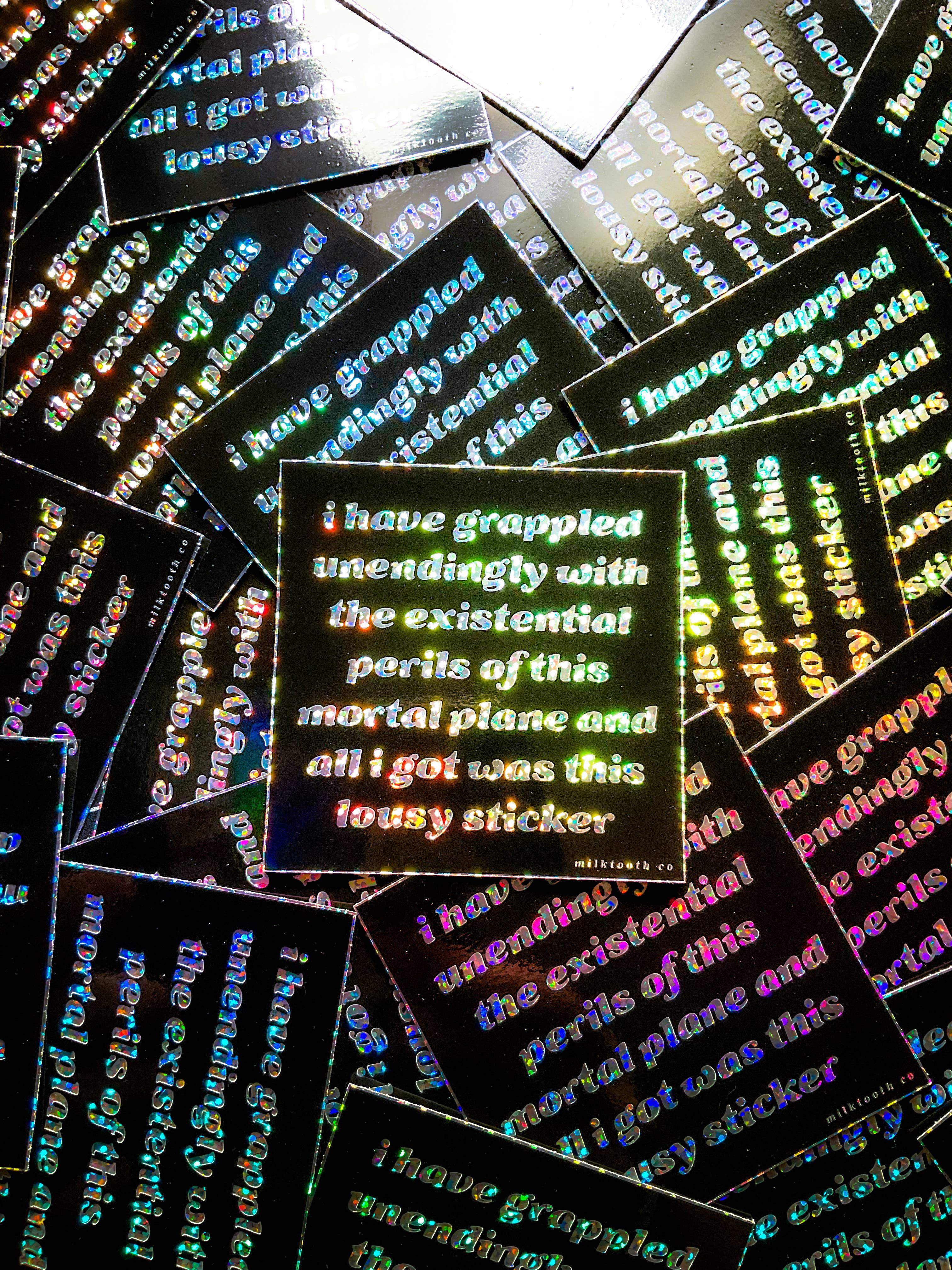Will the horrors never cease?? 3" x 3" glitter square. Vinyl finish makes it water and weather resistant.