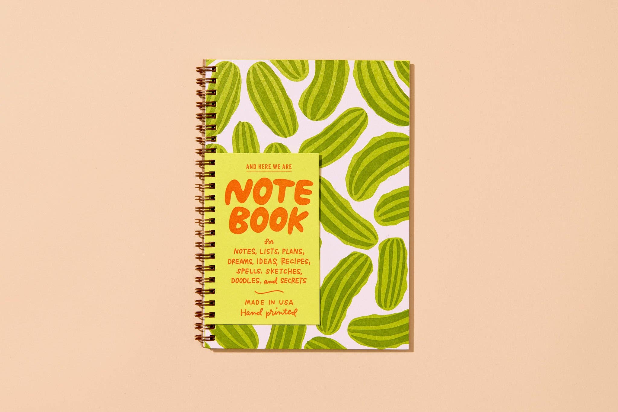 Pickles Letterpress A5 Spiral Notebook - Made in USA - Foodie - Snack - Charcuterie - Back to School, Dinner Party, Housewarming Gift, Christmas Gift, Stocking Stuffer