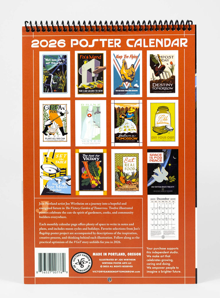 Hand drawn ink pen and gouache painted scenes by Joe Wirtheim adorn this calendar.