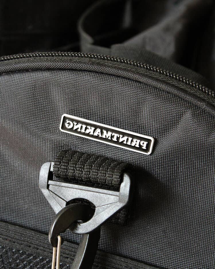 Many printmaking techniques require an artist to deliberately create a flipped image, or mirror image, of their desired composition. During the printing process, this flipped image is then transferred onto paper to reveal the finished form. Our “Printmaking” Pin takes inspiration from this skillful process, showing the work printmaking as a reversed image. Perfectly sized for a shirt pocket or jacket lapel, this pin lets you highlight your artistic know-how, and might even inspire a conversation about your own process.