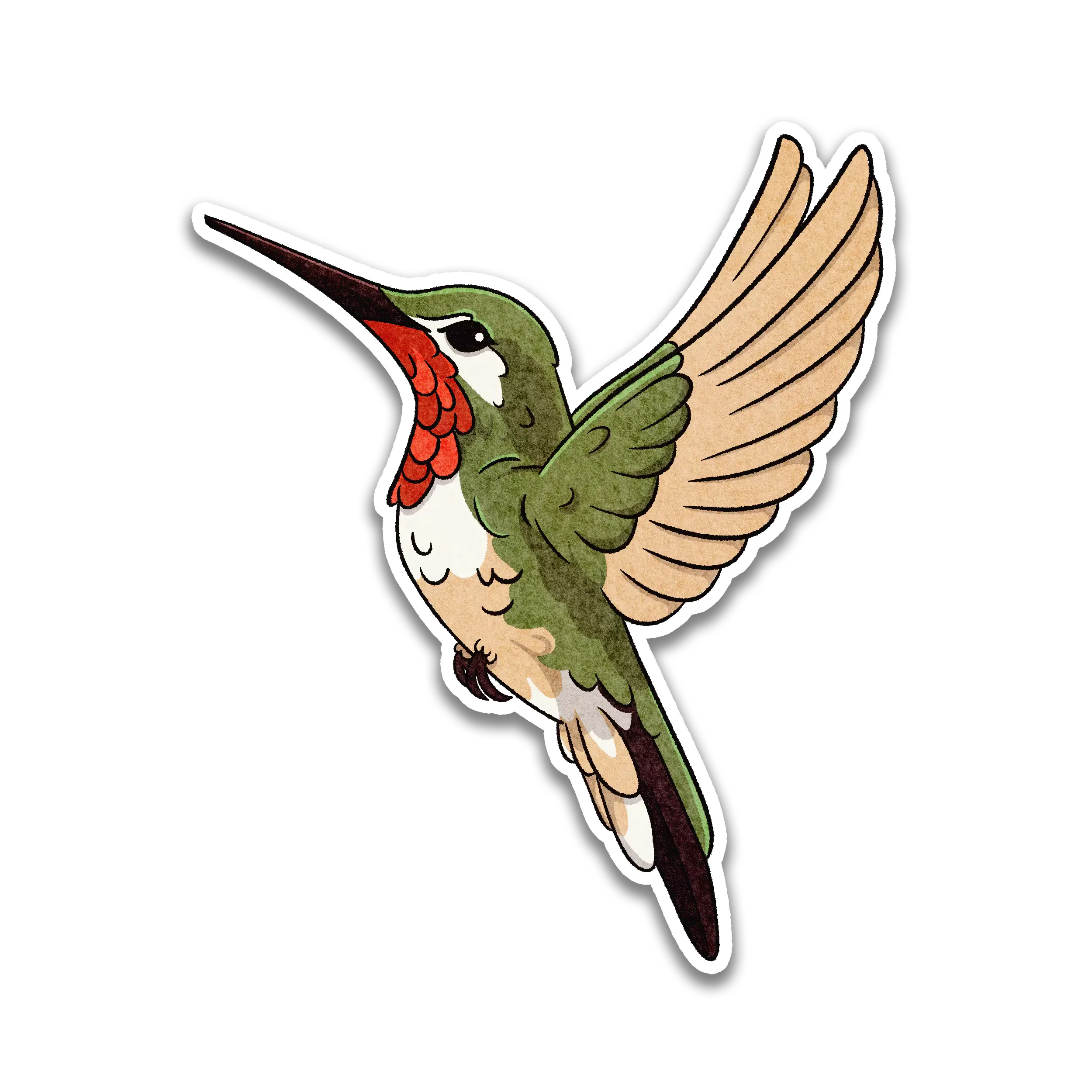 Experience the dazzling beauty of the Ruby Throated Hummingbird with this vibrant sticker! Known for its iridescent feathers and incredible agility, this tiny pollinator is a marvel of nature. Perfect for brightening up your water bottle, laptop, or journal, this sticker celebrates the charm of the Ruby Throated Hummingbird. Details about this product: - Material: Thick & Premium Matte Vinyl. - Features: Waterproof, weatherproof, scratch-proof & dishwasher-proof. - Hand drawn and shipped from the USA. - Lifetime Warranty: If this sticker peels or fades from regular usage, we'll replace it for free.