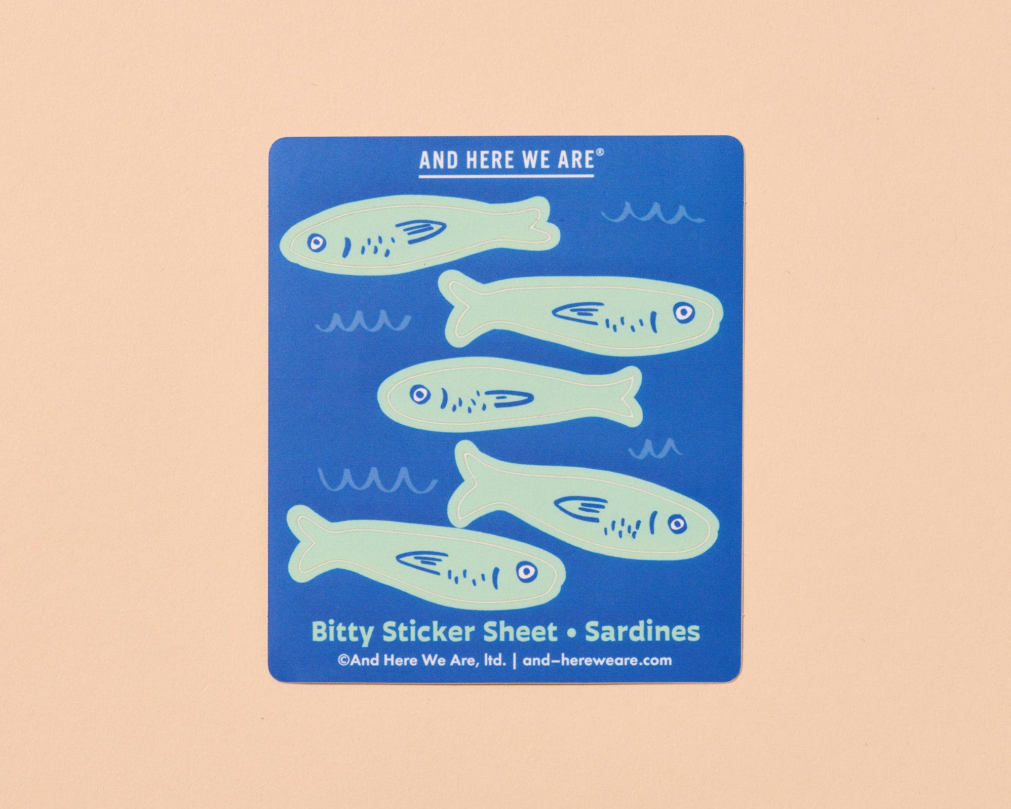 Sardines Bitty Vinyl Sticker Sheet - Made in USA - Foodie - Animal - Ocean - Seafood - Beach - Coastal - Back to School, Stocking Stuffer