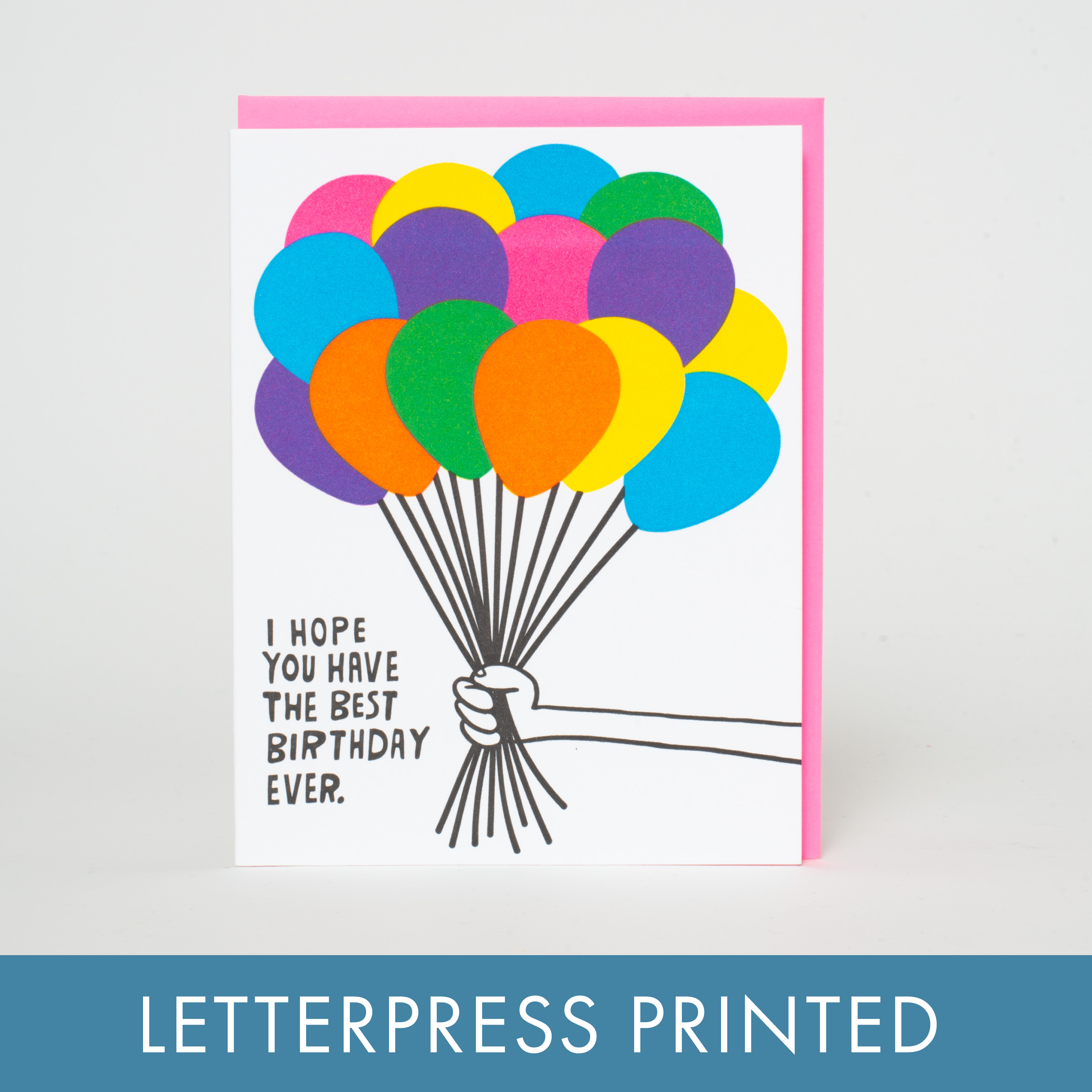 Best Birthday Ever Balloons Letterpress Greeting Card by Ashkahn