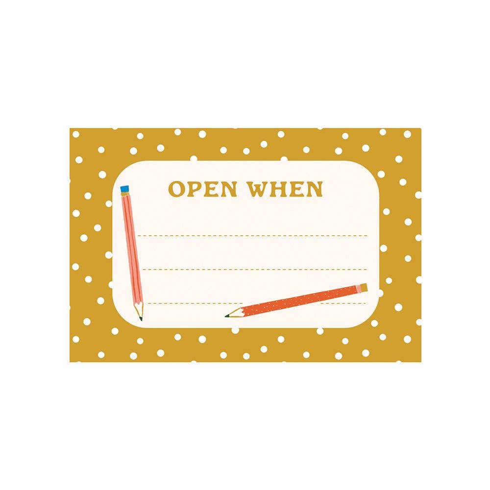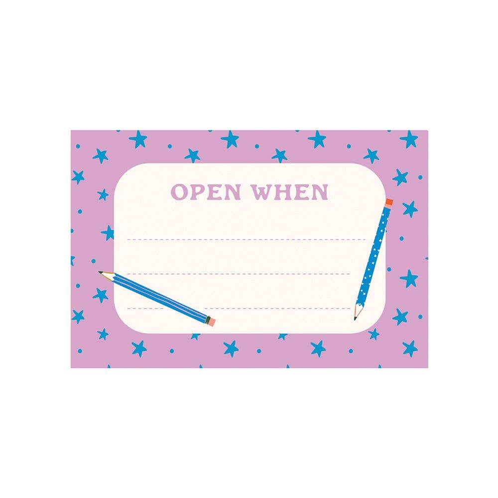 • Lined sheets feature cheerful designs or ""open when..."" prompts for perfectly timed birthday wishes, love notes, holiday greetings, and more.