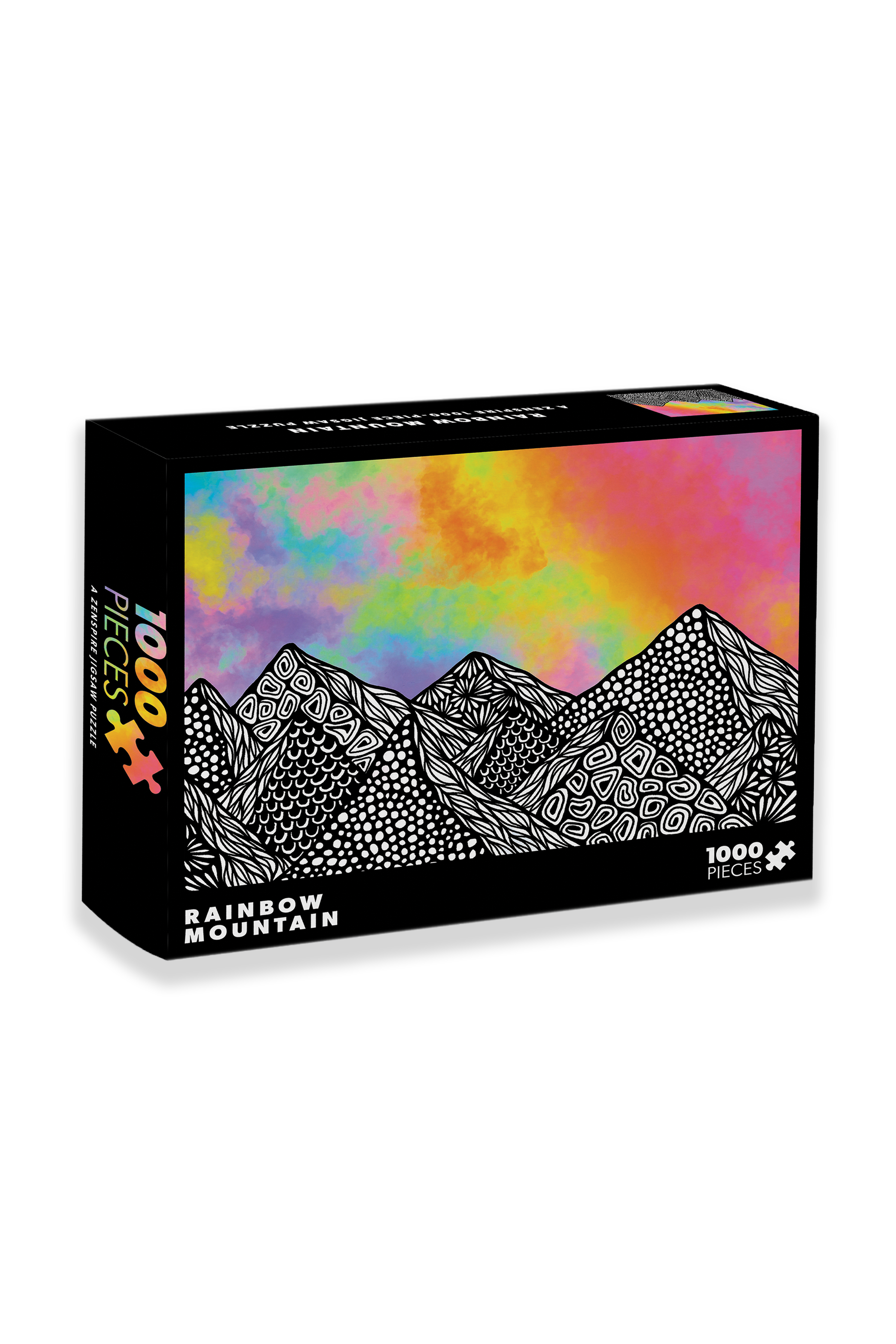 A vibrant addition to any puzzle or gift display, this 1,000-piece jigsaw features Brita Lynn Thompson’s (@zenspiredesigns) bold, zentangle inspired illustration of the Rocky Mountains at sunset. The bright colors and eye-catching patterns offer a satisfying challenge and a stunning finished piece.